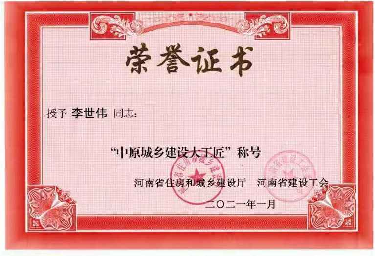 星空官方站网站-星空(中国)李世伟同志获“中原城乡建设大工匠”称号